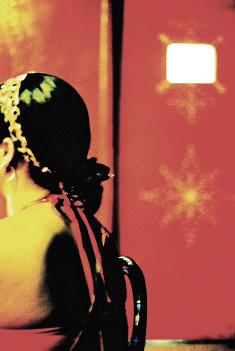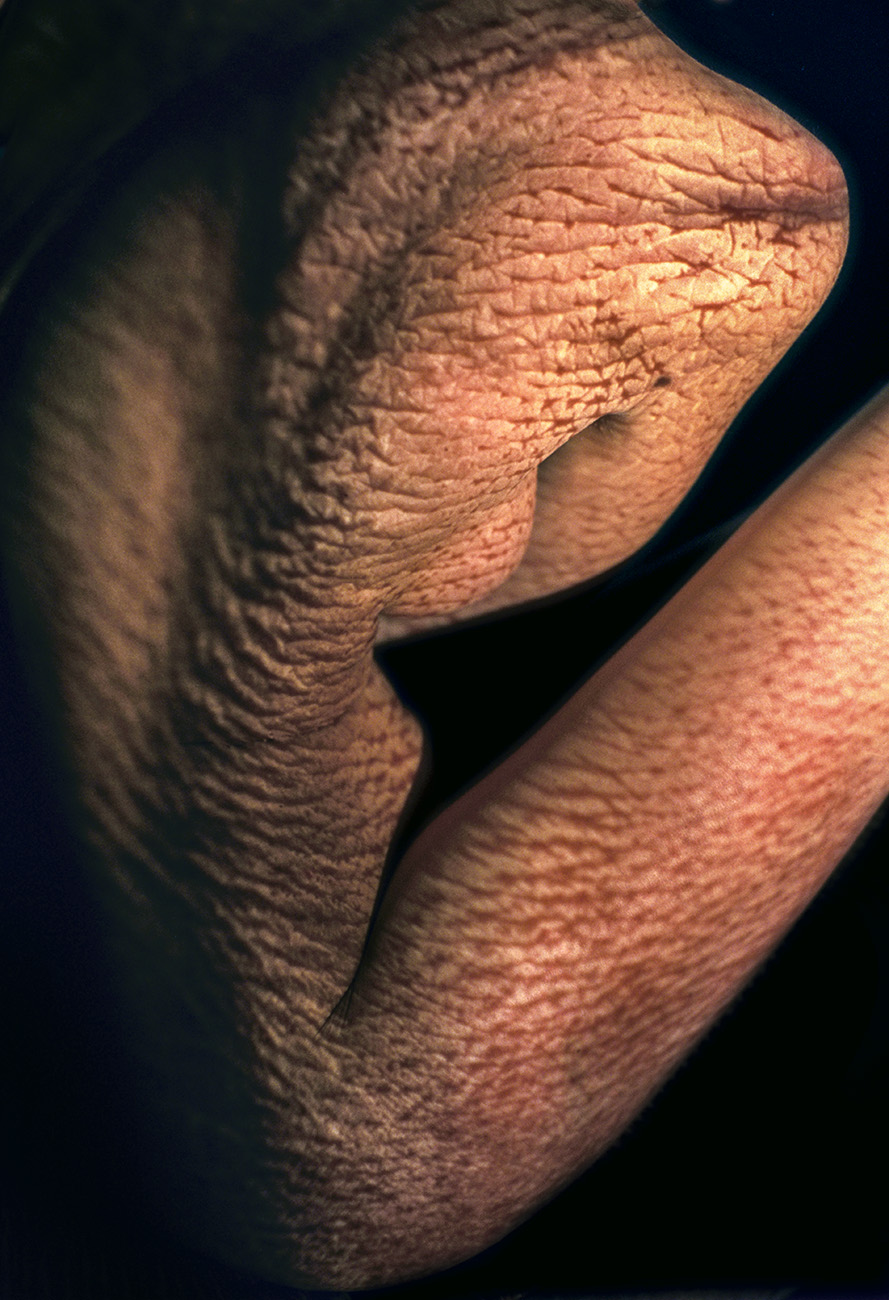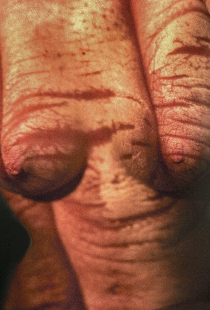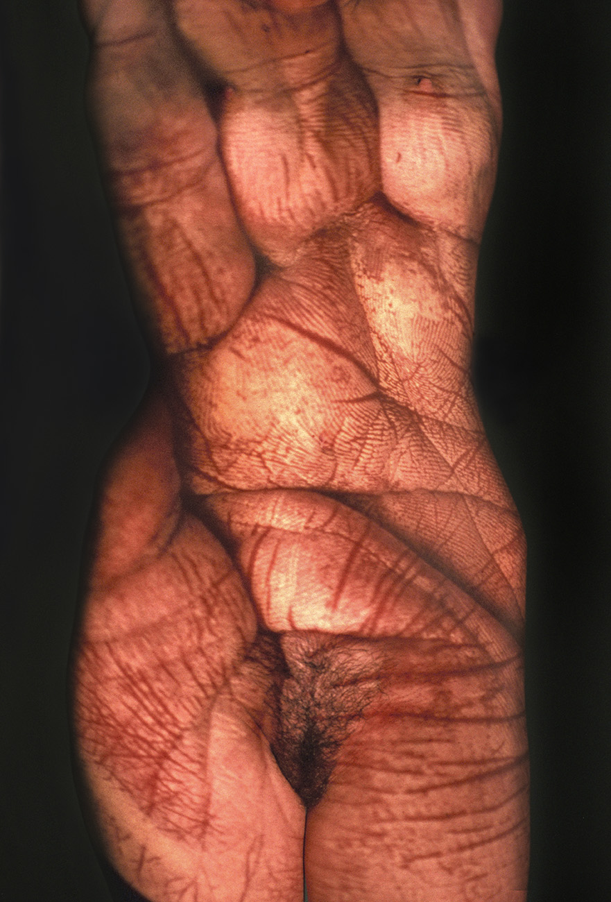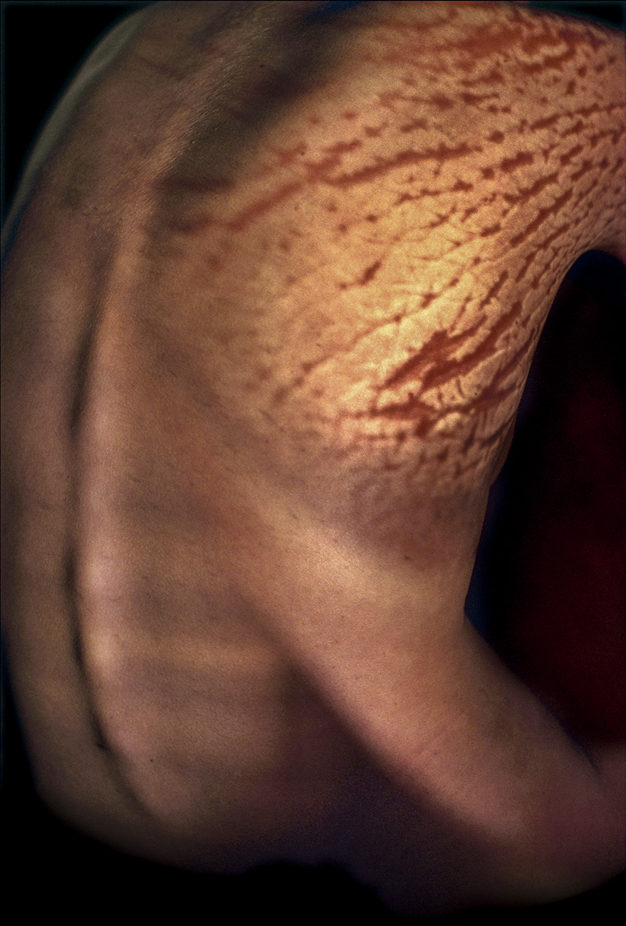 "The beauty comes from inside" Projection of colour slides on the body. Colour negatives, Prague, 1998. -