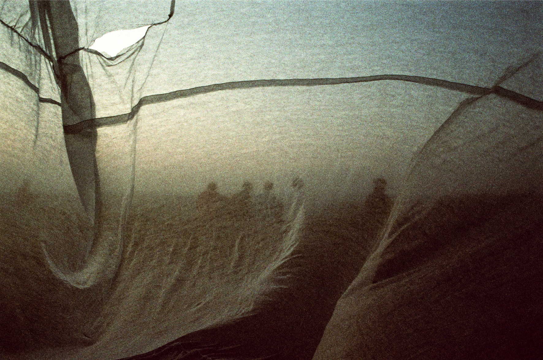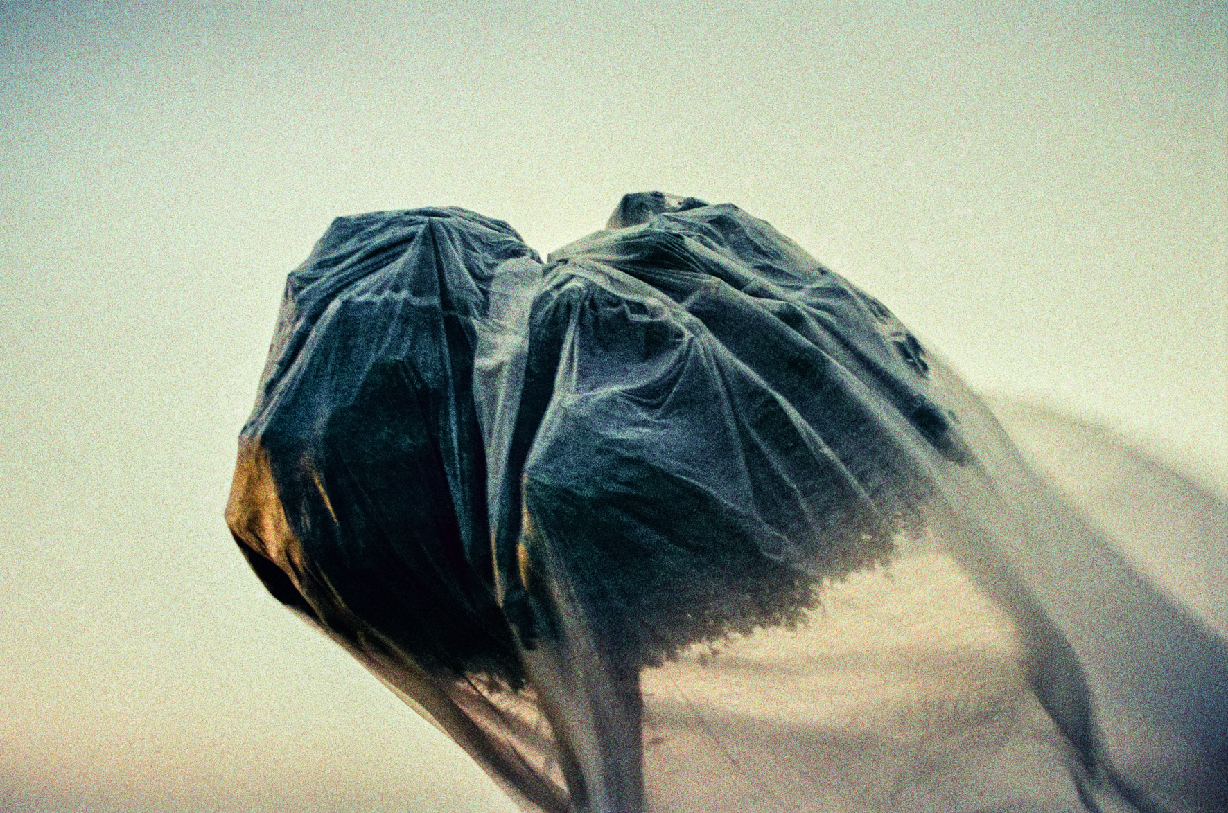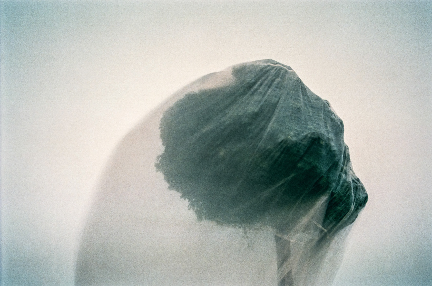 The incomprehensible world of love has only one constant - it changes its shape and form in the most unpredictable way. Its elusive appearance evade from our hands, sight and mind creating everlasting abstract form that we stick to so tightly. We are safe from harm thanks to thin membrane created by love ecstasy, but the shadow of mistrust easily breaks this membrane, once solid like spiders net. At last, only memory leaves its traces on the transparent veil of what was once love. Colour negatives, Ink jet prints, 90x120 cm Novi Sad, 2003 -