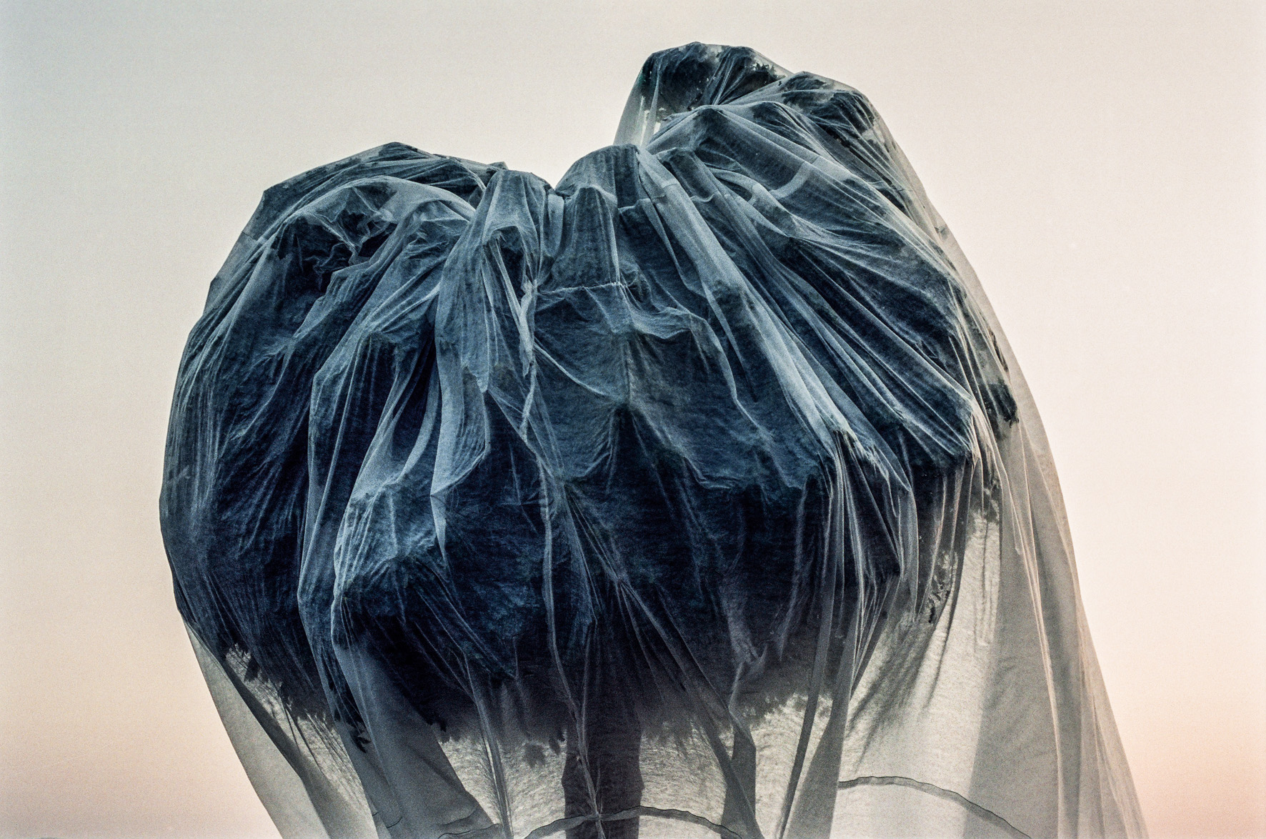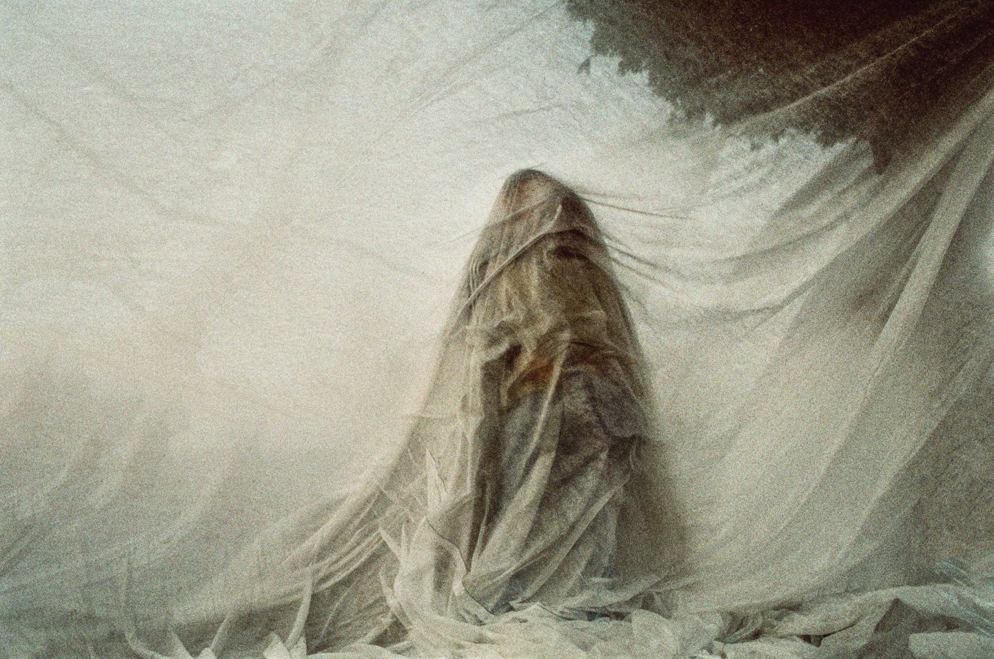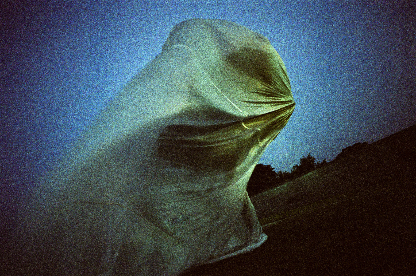 The incomprehensible world of love has only one constant - it changes its shape and form in the most unpredictable way. Its elusive appearance evade from our hands, sight and mind creating everlasting abstract form that we stick to so tightly. We are safe from harm thanks to thin membrane created by love ecstasy, but the shadow of mistrust easily breaks this membrane, once solid like spiders net. At last, only memory leaves its traces on the transparent veil of what was once love. Colour negatives, Ink jet prints, 90x120 cm Novi Sad, 2003 -