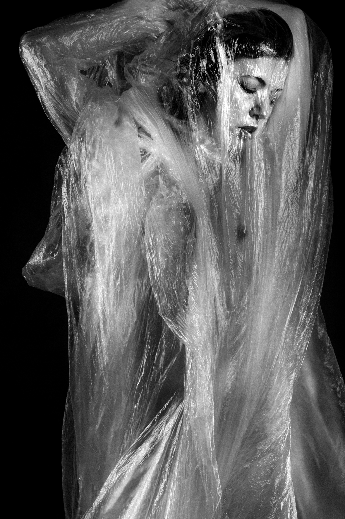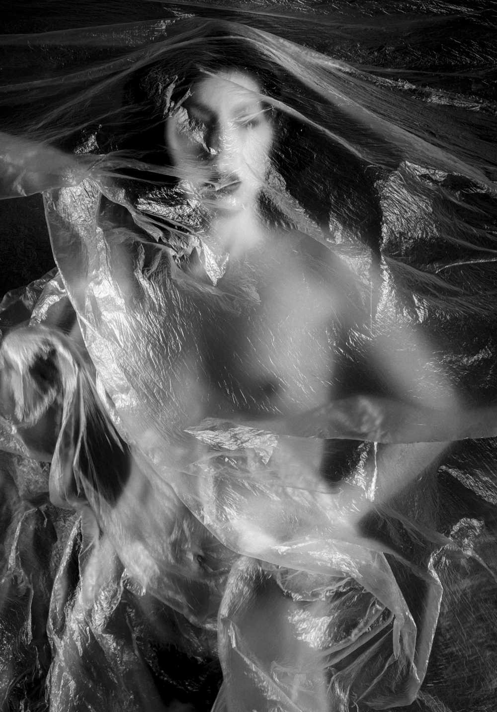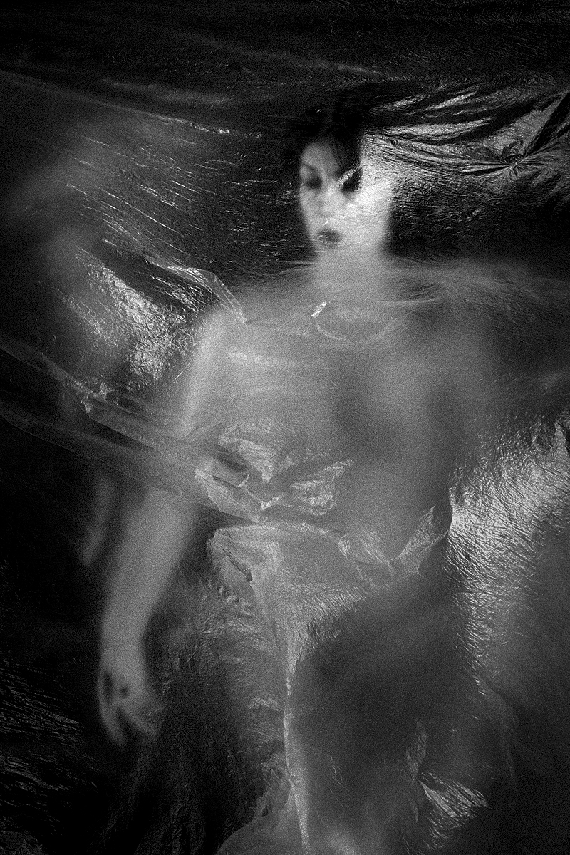 The series of photographs entitled "A short story about... fear" deals with one of the strongest feelings in life for all of us, and that is fear. On one hand, fear drives us to survive, forcing us to go ahead and cross the barriers. On the other hand, fear paralyzes us. Due to the fear we remain locked, frozen in our lifetimes powerless to get rid of that thin, almost transparent membrane that envelops us and all of our actions. Unlike the fear that arises due to the imminent danger, the fear of our own life resides in a subconscious level, and becomes our silent companion, mostly during the whole life. Its destructive power is blurred in the illusion that we passionately cherish - the illusion of control over our lives, just as the photograph has the illusion of reality. However, some manage to solid, petrified form of fear transform into a fluid mass that flows like blood flow to our body and allows it to move freely, changing and evolving. Like the water in which we leave dangling, fear takes the form of what we give to him.